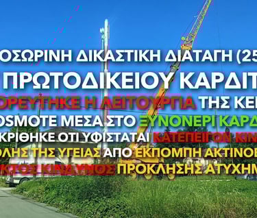 6. Επειδή υπήρξαν "φωνές" για δήθεν νομιμότητα της εγκατάστασης και λειτουργίας της εντός των ορίων ακτινοβολίας, πρέπει να επισημανθεί ότι διαψεύστηκαν οι εν λόγω «Κασσάνδρες» από την ίδια ως άνω Δικαστική απόφαση και καλούμε όλους αυτούς να συστρατευθούν πλέον μαζί μας στον κοινό αγώνα.