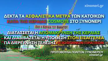 άλλη μια εν συνεχεία δικαίωση της Πρωτοβουλίας Πολιτών Ξυνονερίου, η οποία εξ αρχής διέγνωσε το πλήθος και την έκταση των πολλαπλών παρανομιών που συντελέστηκαν με την εγκατάσταση της κεραίας ενημερώνοντας σχετικά τους πολίτες του Ξυνονερίου